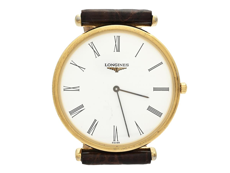 LONGINES, La Grande Classique, Serial no. 29398511, Case no. L4.635.2, men´s wristwatch, 33 mm, gold plated, quartz, sapphire crystal, movement not signed, leather strap, gold plated original buckle, approx. 1995.