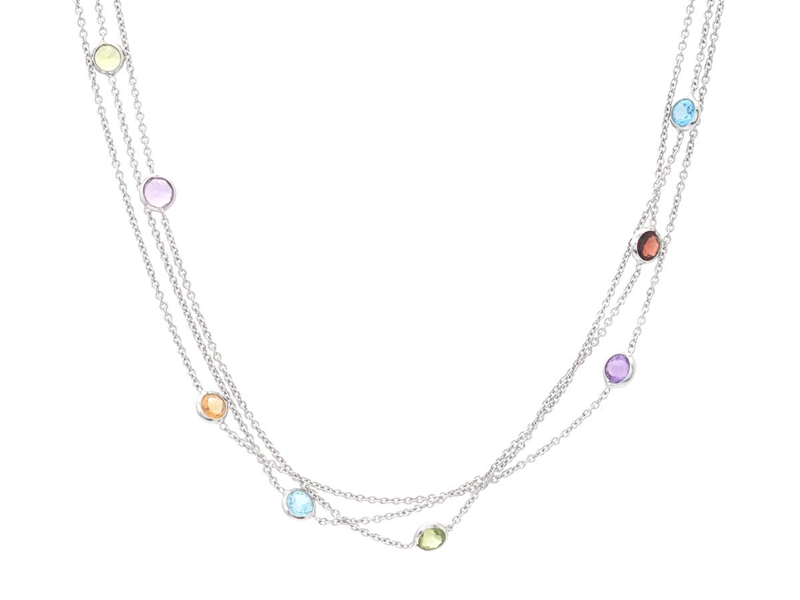 NECKLACE, 18K white gold, garnets, topaz, peridots, citrines, amethysts, 3-strand, length 41 cm, weight 7,4 g.