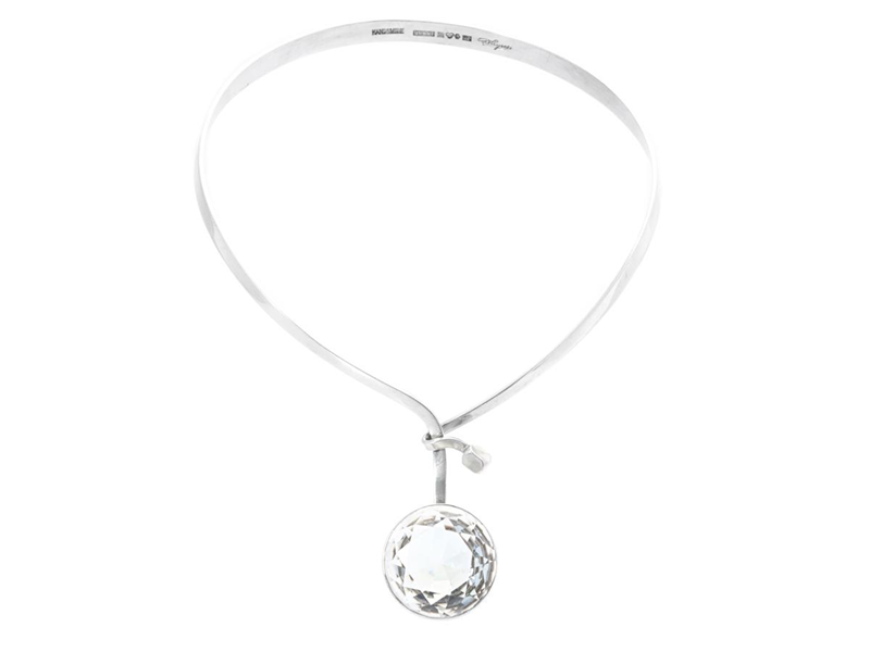 GUSSI, stiff necklace, silver, rock crystal, design Gert Thysell, Malmö 1973, weight 43,9 g.