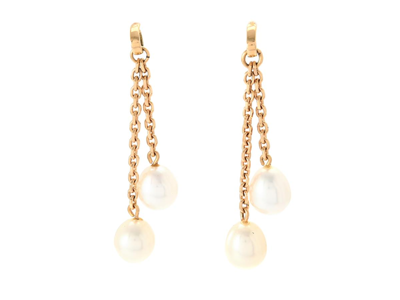 EFVA ATTLING, earrings, 18K gold, cultured freshwater pearls, pushback, height approx. 45 mm, weight 5,8 g.