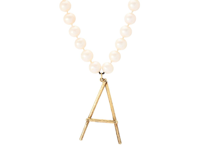 MARIA NILSDOTTER, necklace, Pearl Letter Necklace, cultured freshwater pearls, gilt silver, letter A, length 44-48 cm.