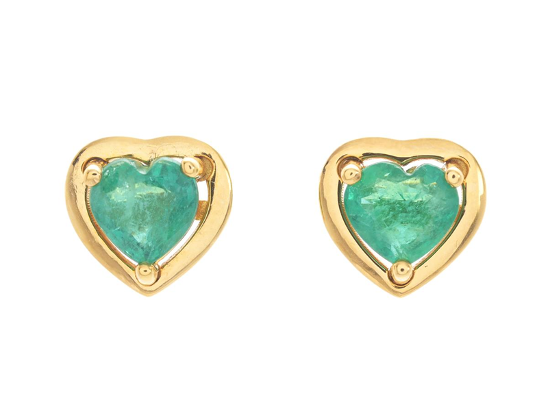 EARRINGS, 18K gold, heartshaped emeralds 2,21 ctw, weight 4,4 g, pushback, the emeralds has small notches.