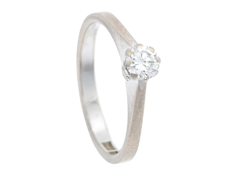 SOLITAIRE RING, 18K white gold, brilliant cut diamond 0,32 ct according to engraving, approx. W/VS, size 17,75+ mm, weight 3,4 g, heavy worn prongs.
