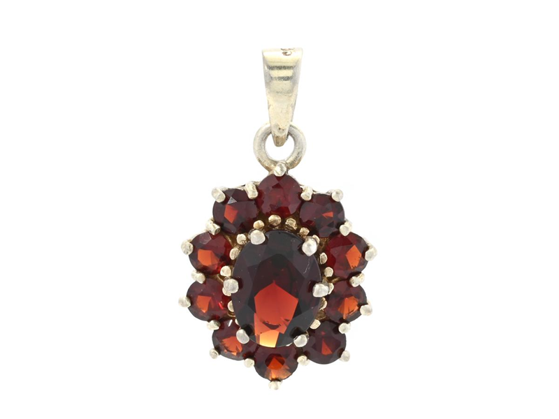 PENDANT, silver, garnets, height approx. 20 mm, weight 2,2 g.