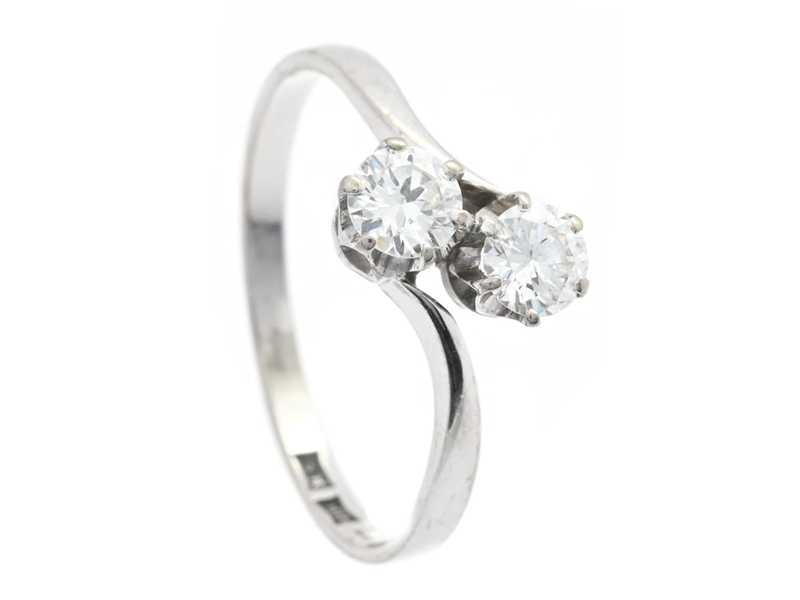 TWO STONE CROSS OVER RING, 18K white gold, 2 brilliant cut diamonds 0,40 ctw according to engraving, approx. W/VS, J Petterssons Eftr., Stockholm 1960, size 17,25 mm, weight 2,1 g.