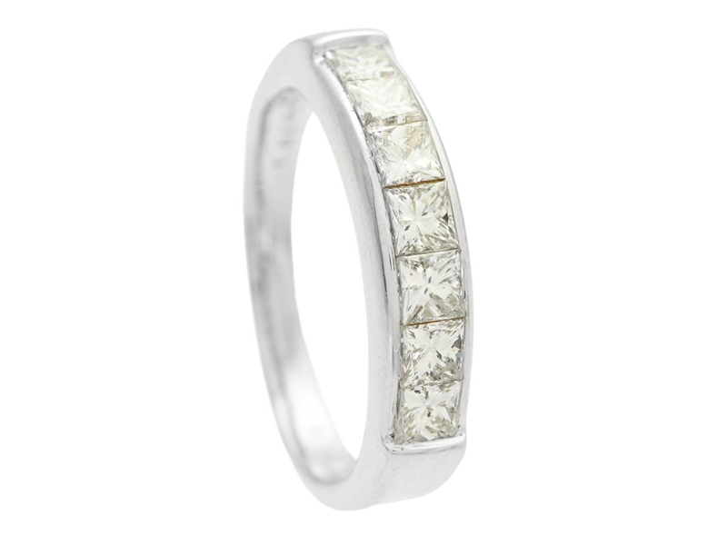 ETERNITY RING, 18K white gold, 7 princess cut diamonds 1,00 ctw, approx. Cr/VS, size 17,25 mm, weight 4,9 g.