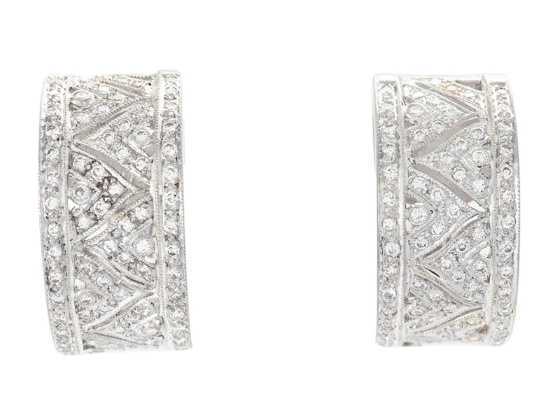 EARRINGS, 18K white gold, 162 brilliant cut diamonds approx. 0,81 ctw, approx. TW-Tcr/VS-SI, pushback with clips, weight 12,2 g.