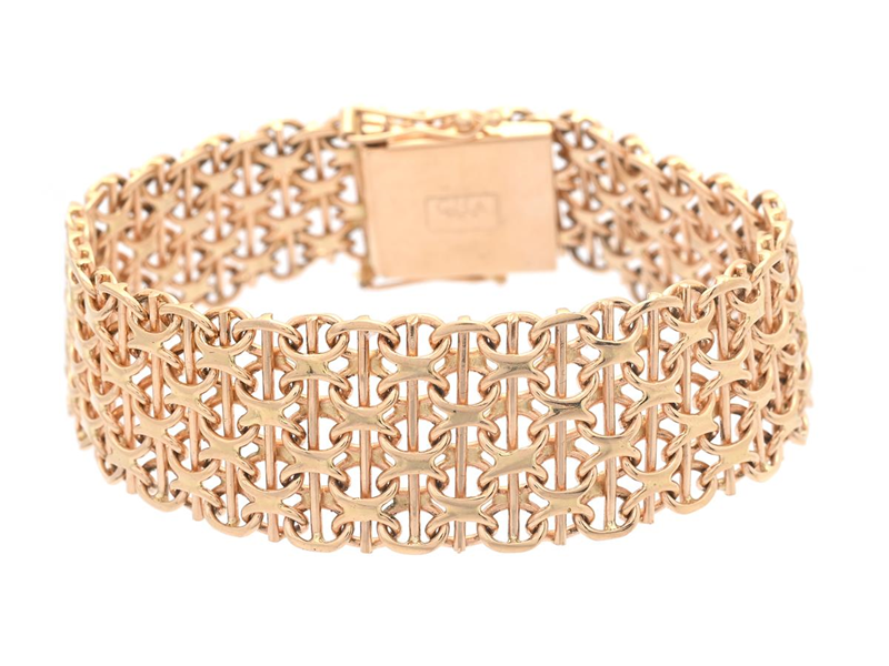BRACELET, 18K gold, X-bracelet with bar, width 19 mm, length 19 cm, weight 49, g.
