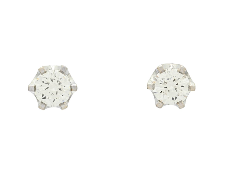 SOLITAIRE EARRINGS, 18K white gold, 2 brilliant cut diamonds approx. 0,50 ctw, approx. TW(G)/VS, pushback, weight 1,5 g.