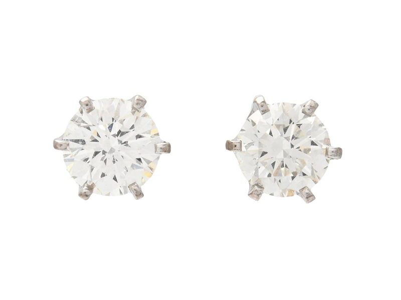 SOLITAIRE EARRINGS, 18K white gold, brilliant cut diamonds approx. 0,70 ctw, approx. TW-W/VS-SI, weight 1,4 g, pushback, case.