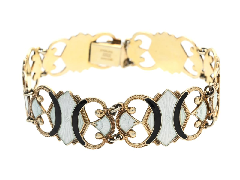 MAGNUS AASE, bracelet, sterling silver, enamel decor, Norway, length 19 cm, weight 24,3 g.