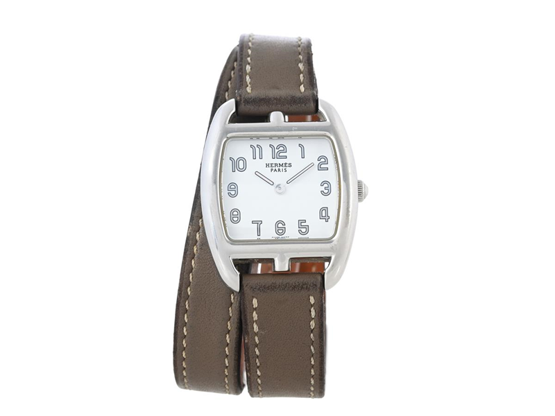 HERMÈS, Paris, Cape Cod Tonneau, Serial no. 2795614, Case no. CC1.210, ladies´ wristwatch, 27 x 24 (34) mm, steel, quartz, sapphire crystal, leather strap (double loop), original buckle, certificate, January 2010, box.