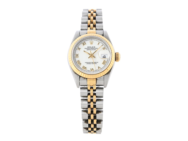 ROLEX, Oyster Perpetual, Datejust (T Swiss Made T), Chronometer, Ref no. 69173, Serial no. W325833, Cal 2135, Movement no. 2951615, Case no. 69000A, ladies´ wristwatch, 26 mm, steel/gold, self winding, sapphire crystal (scratches/notch), date, Jubilee bracelet, folding clasp, Ref no 62523D.18- W1/468 B, certificate, March 1996, box.