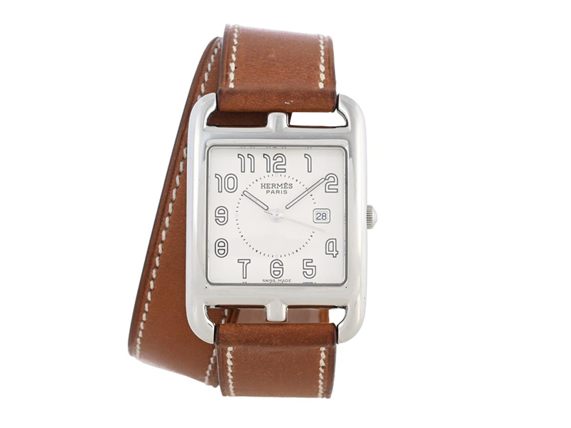 HERMES, Paris, Cape Cod GM, Serial no. 2664090, Ref no. CC2.710, unisex, 28,5 x 29,5 (41) mm, steel, quartz, sapphire crystal, leather strap (double-loop), original buckle, approx. 2010.