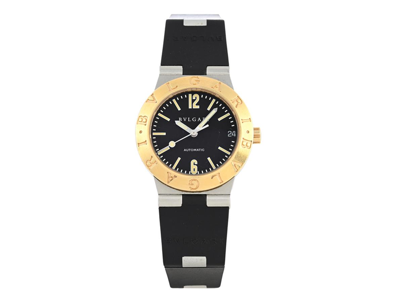 BVLGARI, Diagono, Cal 3002-MBBA, Serial no. L 1116, Ref no. LC 29 SG, ladies´ wristwatch, 29,5 mm, steel/gold, self winding, sapphire crystal (scratches/notches), date, integrated rubber strap, original buckle, approx. 1995.