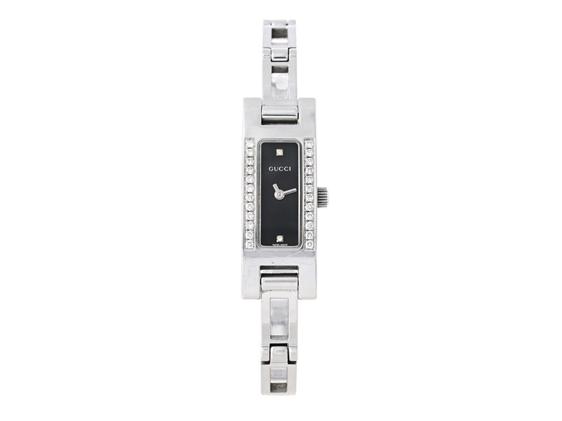 GUCCI, ladies´ wristwatch, 12,5 x 24 (34) mm, Serial no. 0288525, Case no. 3900L, steel, quartz, sapphire crystal, dial with diamonds (2 pcs. 8/8), brilliant cut diamonds on the case (24 pcs. TW/VS, approx. 0,20 ctv), original bracelet, approx. 2003.