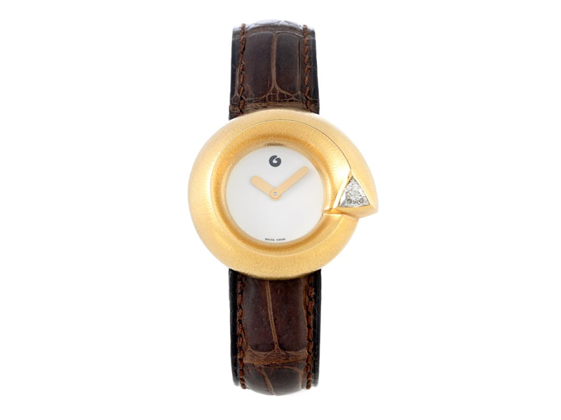 OLE LYNGGAARD, Copenhagen, Trilliant, Serial no. 021, Ref no. A1500-401, ladies´ wristwatch, 33 mm, 18K gold, quartz, sapphire crystal, trilliant cut diamond (approx. W/VS, approx. 0,40 ct), leather strap, folding clasp in steel, approx. 2020.