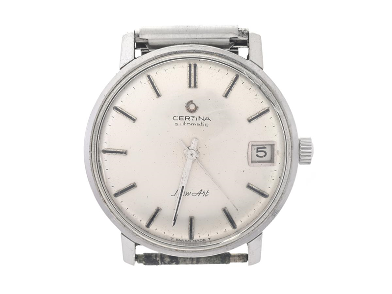 CERTINA, New Art, Serial no. 6548437, Case no. 5801.108, men´s wristwatch, 33 mm, steel, self winding, plastic crystal (damaged), date, damaged dial, needs service, approx. 1967.