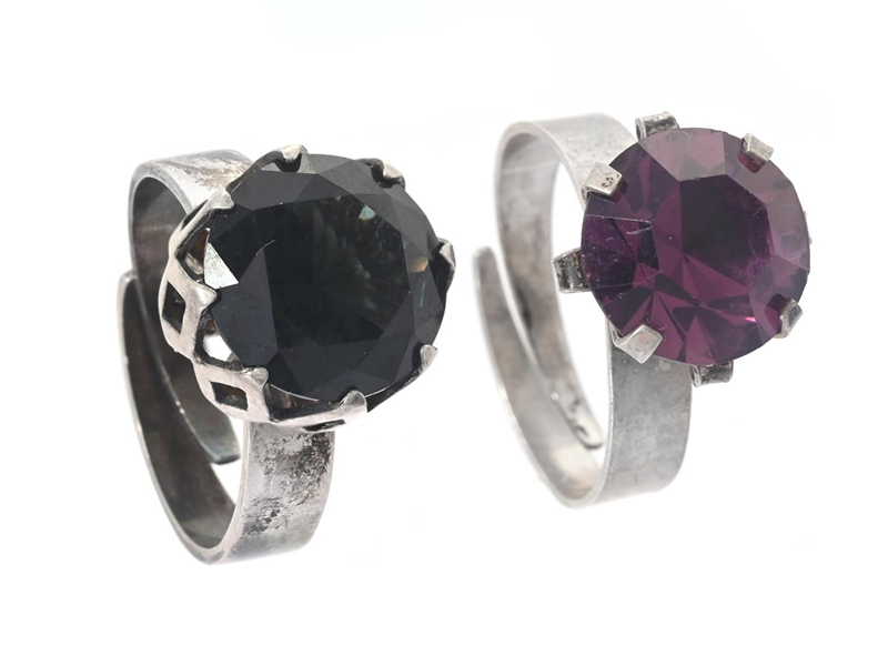JEWELLERY SET, 2 items rings, purple and green glass, adjustable size, weight 9,5 g.