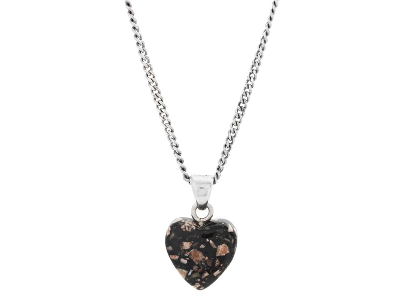 PENDANT/CHAIN, "curb", length chain approx. 42 cm, heart, beach stone, height pendant inc. loop 2 cm, weight approx. 5,2 g.