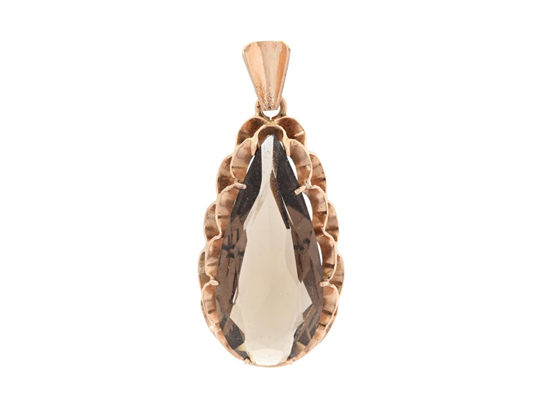 PENDANT, 14K gold, smoky quartz, height incl loop 4,5 cm, weight approx. 6,9 g.