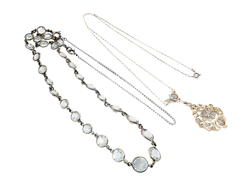 JEWELLERY SET, 2 items necklace, silver and paste, length approx. 50 resp 60 cm, weight 23,9 g.