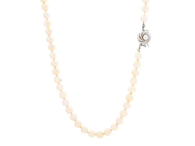 PEARL NECKLACE, sterling silver, cultured freshwater pearls approx. 7 mm, knotted, length 49 cm, weight approx. 33,7 g.