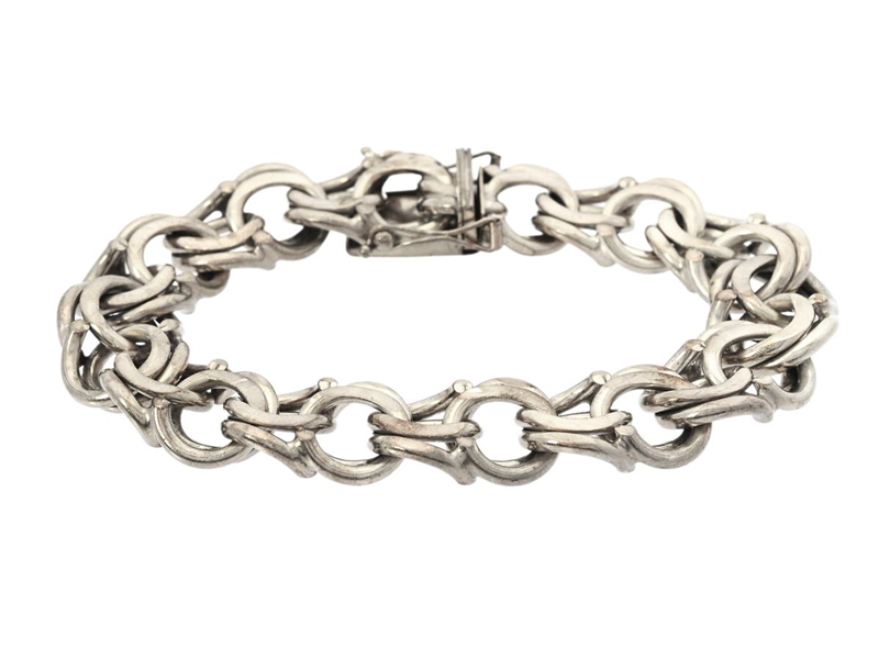 BRACELET, bismarck chain, box clasp, length approx. 19,5 cm, safety eights, width 1,3 cm, weight approx. 47,2 g.
