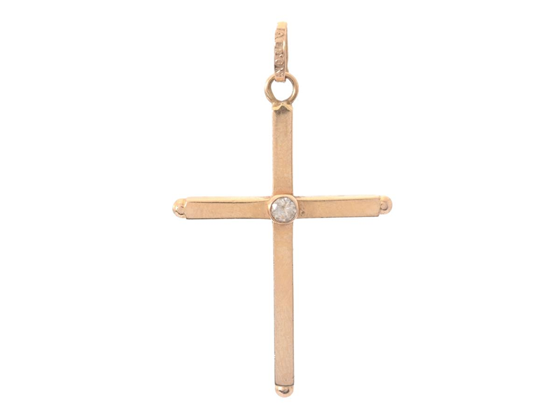 PENDANT, 18K gold, white stone, cross, length 3,5 cm, weight 1,2 g.