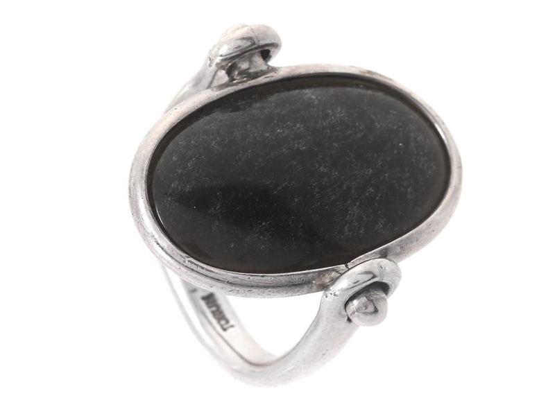 RING, sterling silver, mother of pearl, black stone "Torun", spins, size 19,25 mm, weight 9,3 g,