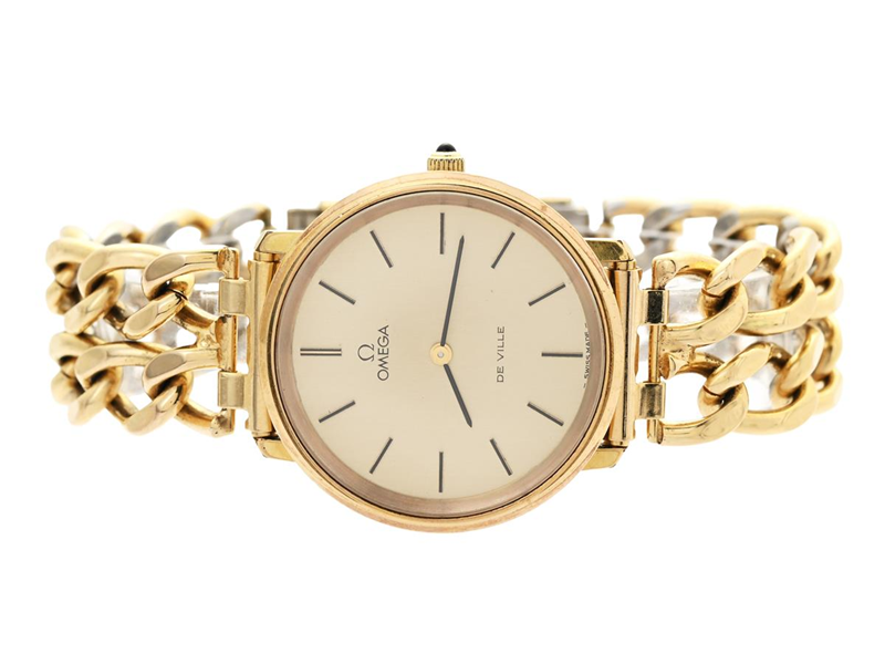 OMEGA, The Ville, Cal 625, Serial no. 41975075, Ref no. MD 111.0107, Case no. 111.0107 (LL), men´s wristwatch, 33 mm, gold plated (20 micron), manual winding, mineral crystal, approx. 1978, metal bracelet not oirginal.