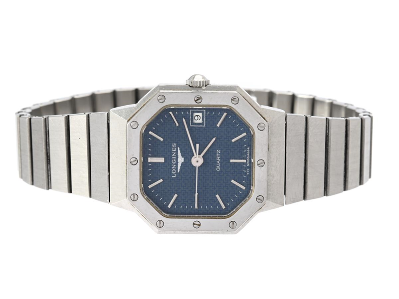 LONGINES, ladies´ wristwatch, 24 x 28 mm, Serial no. 19478236, Case no. 4864/111, steel, quartz, mineral crystal, date, original bracelet, length 165-160 mm, approx. 1985.