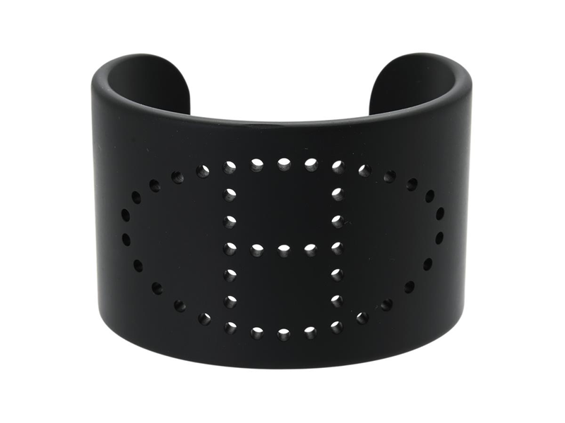 HERMÈS, BANGLE, Evelyne Sunset Perforated Cuff, black aluminum, diameter approx. 4,8 cm, width 34 cm, Made in USA, jewellery pouch, original box. Excellent Condition.