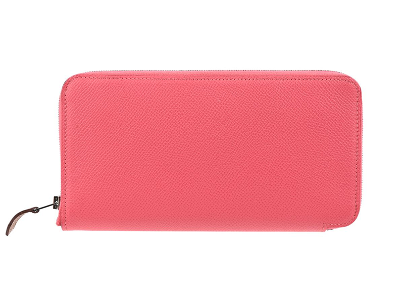 HERMÈS, WALLET, Azap Lonk Bee-fold Silk-in Zipper Wallet, pink azalee Epsom leather, brown leather, silver-tone hardware, 20x11x1,5 cm, coin, bank-notes, card, original box. Very Good Condition.
