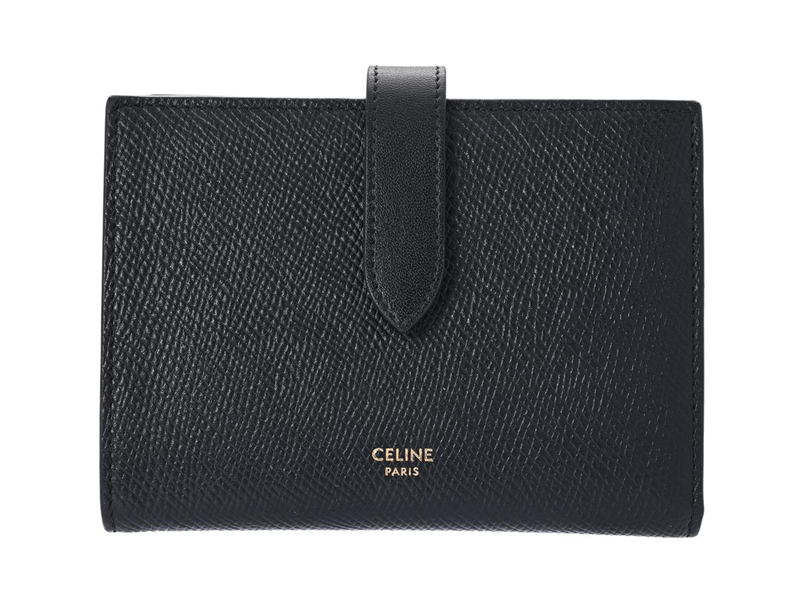 CELINE, WALLET, Medium Strap Wallet, black leather, gold-tone hardware, 14x10 cm, card, coin, bank-note, care booklet, dustbag, original box. Excellent Condition.