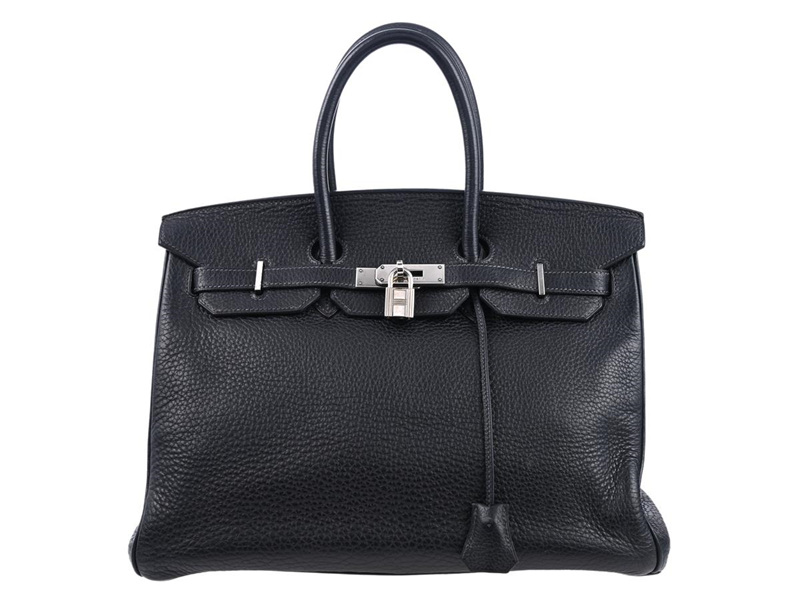 HERMÈS, BAG, Birkin Retourne 35, Verso black Togo leather, palladium-plated hardware, 34,5x24,5x17,5 cm, marked G in square, year 2003, padlock and key marked 60. Good Condition.