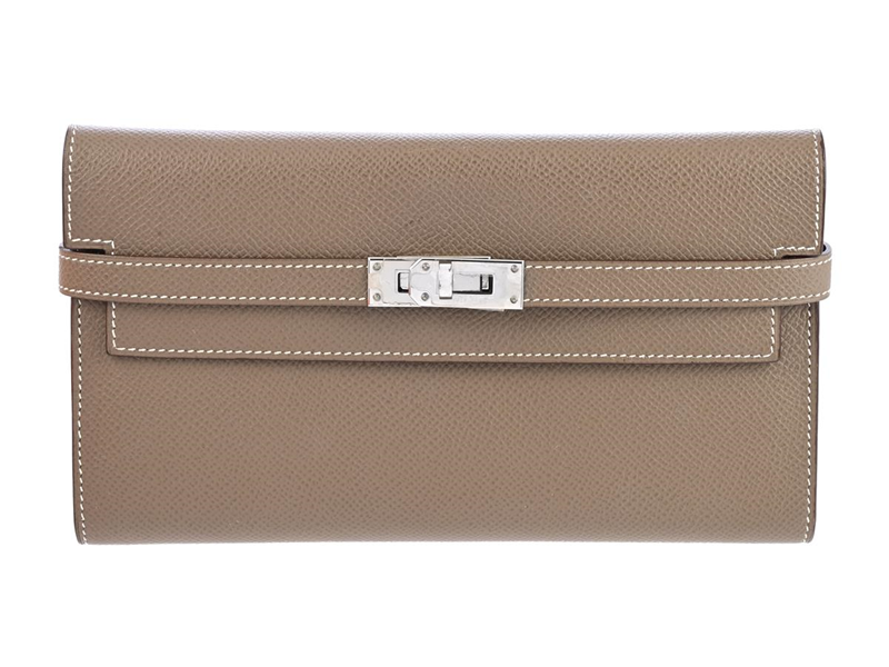 HERMÈS, WALLET, Kelly Longue Wallet, green/brown Epsom leather, silver-tone hardware, 20x11x1,5 cm, marked C, year 2018, original box. Very Good Condition.