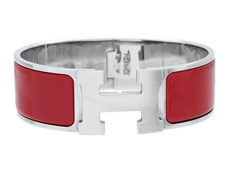 HERMÈS, BANGLE, Clic Clac H Bracelet, red enamel, palladium-plated hardware, width 2 cm, diameter 5,7 cm, jewellery pouch, original box. Very Good Condition.
