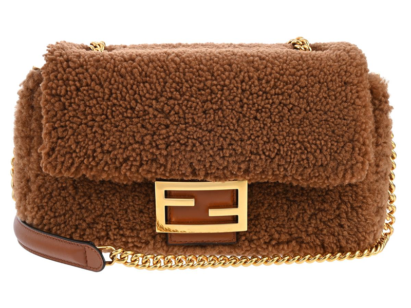 FENDI, BAG, Baguette Bag, brown fur, lambskin, gold-tone hardware, 23x12x8 cm, tag, dustbag. Very Good Condition.