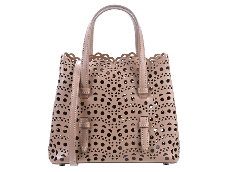 ALAIA, BAG, Mina 20 Bag, Vienne wave, beige, pink calfskin, silver-tone hardware, 20x18x10 cm, inside pochette, 13,5x8 cm, detachable shoulder strap, dustbag. Excellent Condition.