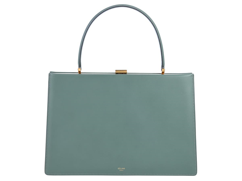 CELINE, BAG, Clasp bag, green leather, gold-tone hardware, 32,5x22x8 cm, dustbag. Good Condition.