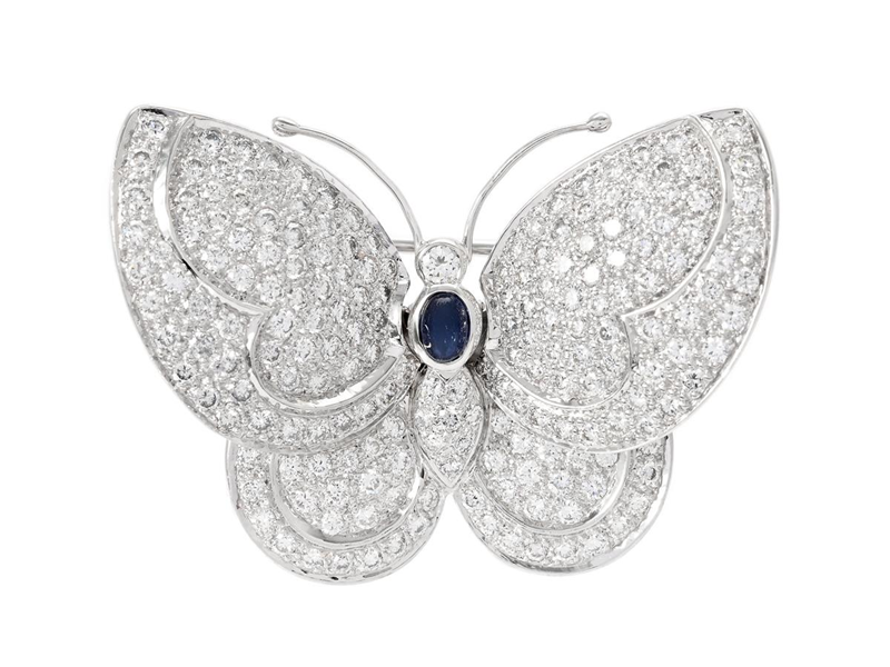 BROOCH, butterfly, En Tremblant, 18K white gold, cabochon cut sapphire, 175 brilliant cut diamonds approx. 1,80 ctw, approx. TW-TCr/VS, measurements 36x26 mm, weight 18,3 g.