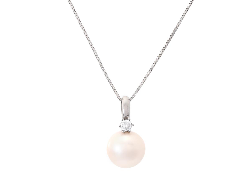 PENDANT WITH CHAIN, 18K white gold, South sea pearl 12 mm, brilliant cut diamond approx. 0,16 ctw, approx. TW/VS, length 42 cm, weight 5,8 g.