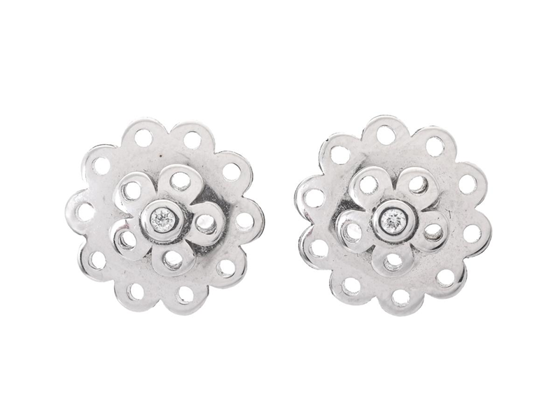 OLE LYNGGAARD, earrings, Lace, 18K white gold, brilliant cut diamonds 0,02 ctw, TW/VS, 10 mm, weight 3,8 g, pushback.