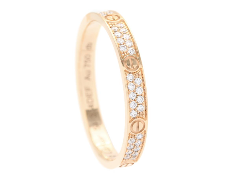 CARTIER, ring, Love, mini modell, 18K gold, brilliant cut diamonds 0,19 ctw, serial number. 374DEF, size 54, weight 2,2 g, certificate, original case.