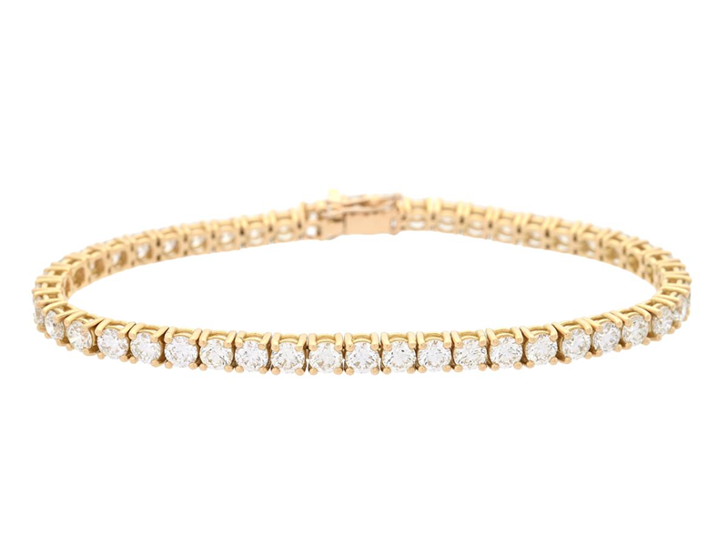 TENNIS BRACELET, 18K gold, 47 brilliant cut diamonds approx. 8,81 ctw, approx. TW/VS, length 18 cm, weight 15,6 g, a few diamonds has notches on the culet.