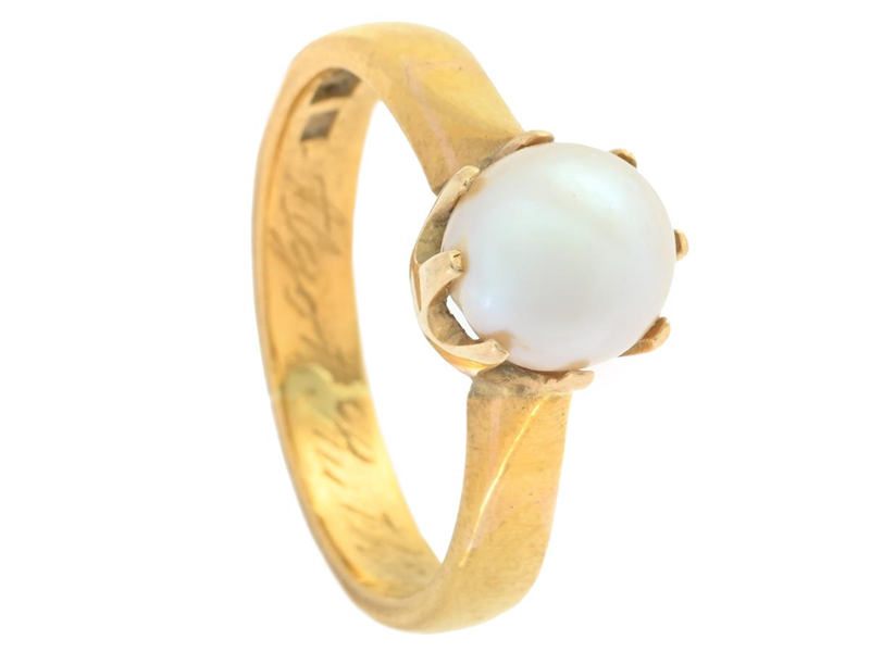 PEARL RING, 18K gold, cultured pearl, size 16 mm, weight 5,2 g, personal engraving.
