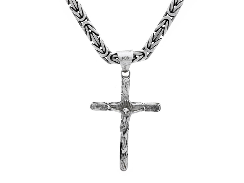 PENDANT/CHAIN, emperor link, crucifix, length chain 55 cm, measurements cross approx. 7 x 4 cm, total weight 146,7 g.
