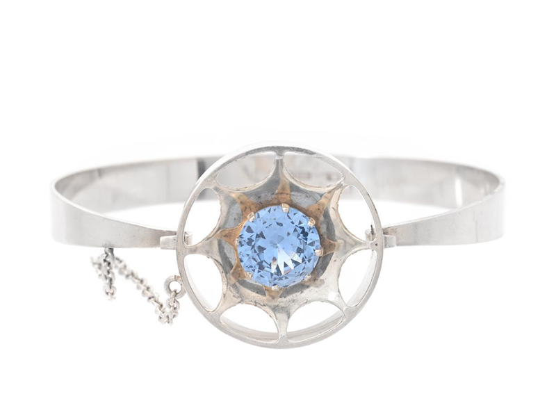 BANGLE, sterling silver, synthetic spinel, inner measurement 6,2 x 5,2 cm, Kultaseppä Salovaara, Åbo 1974, weight 16,2 g