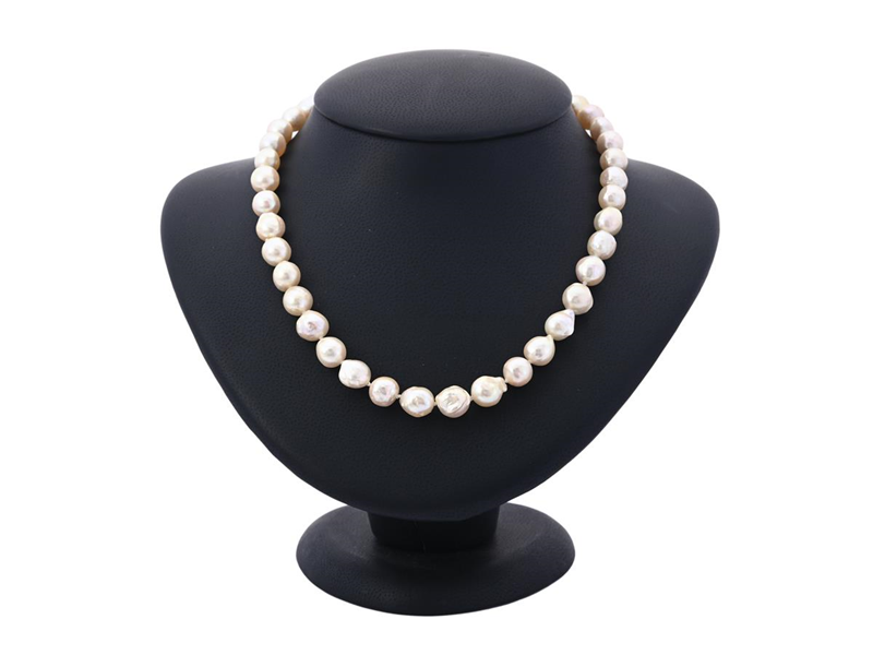 PEARL NECKLACE, cultured pearls approx. 7,8-8,8 mm, clasp in silver with marcasites, length 42 cm, weight 35,2 g.